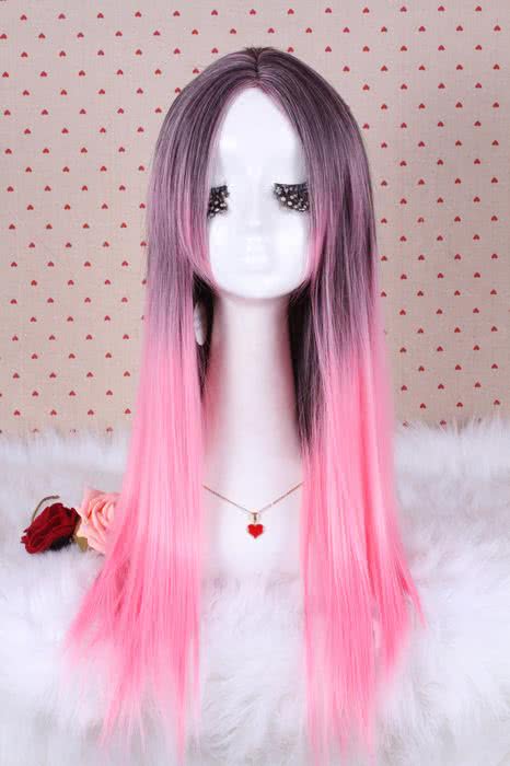 70 cm Long Fashion Wig Charm Con Zipper Mix Straight Magenta Women Anime Cosplay Cabello