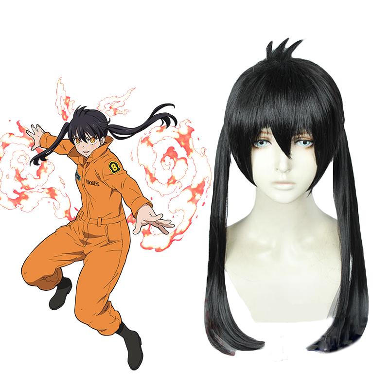 Fire Force Kotatsu Tamaki Negro Long Dual Horsetail Cosplay pelucas