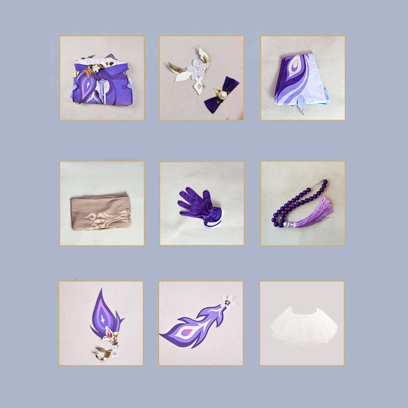 Los elementos incluidos: vestido, mangas, pantalones, guantes, ropa de cabeza, collares, senos, accesorios de cintura, falda