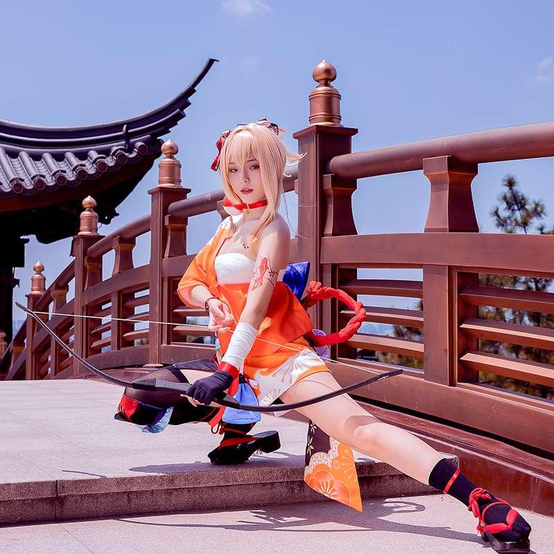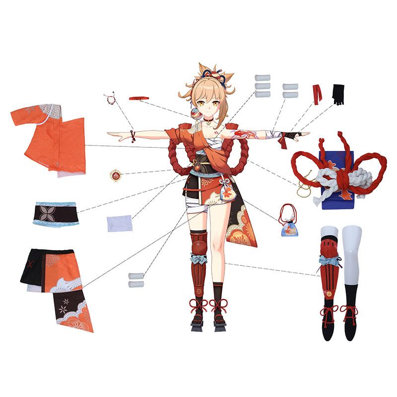 Los elementos incluidos: kimono, falda, sello de cintura, accesorios de arco, armadura de piernas, calcetines, guantes, cintura, vendaje*7, adornos de cuello, pulseras, correas de manos, accesorios